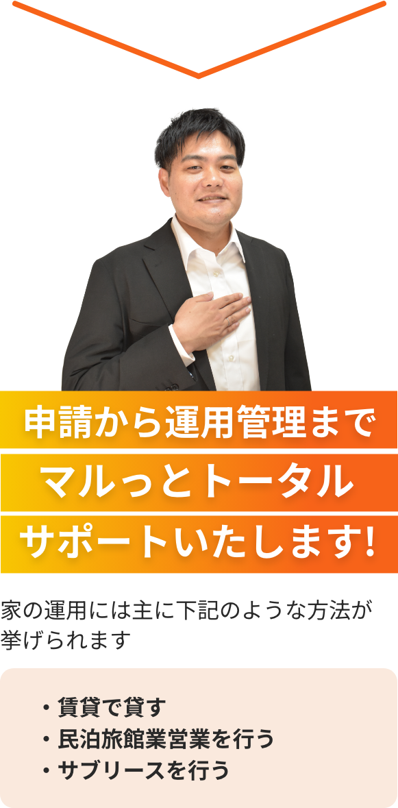 不動産物件を民泊(住宅宿泊事業)や旅館業などに活用する。